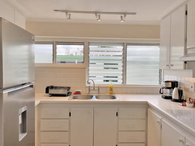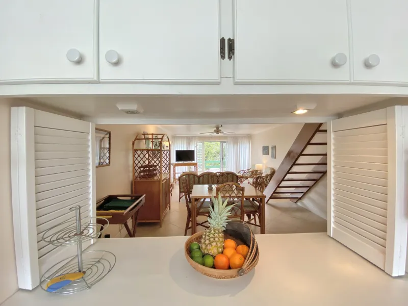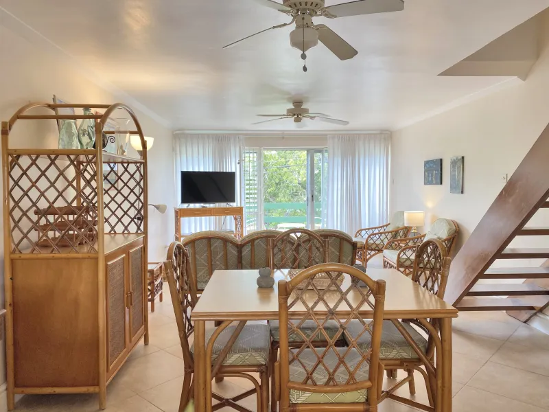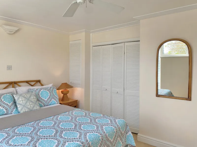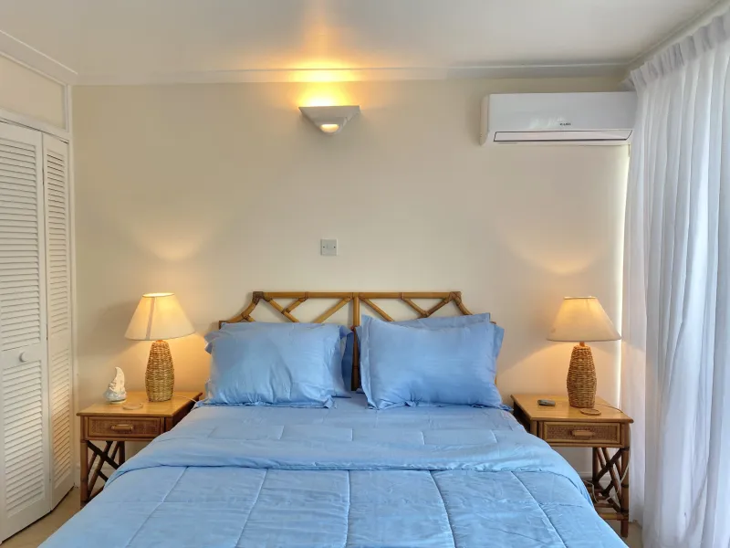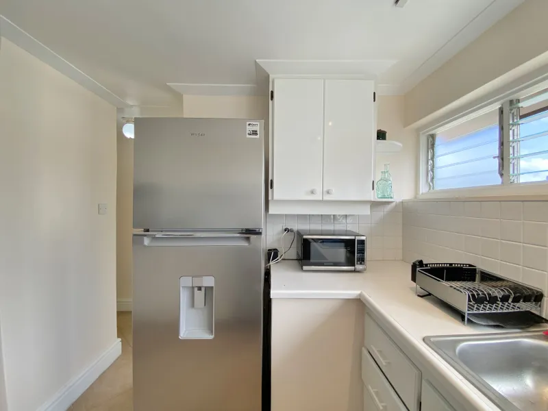 The open plan living and dining area benefit from a nice breeze and extend out to a cozy patio, offering glimpses of the nearby sea. The kitchen is well equipped, and the cabinetry was recently upgraded to a white automotive-finish. Both bedrooms are outfitted with queen size beds, air-conditioning and built-in cupboards for added comfort. The shared bathroom was recently refurbished to achieve a more modern finish, and offers a walk-in shower. There is also a communal pool and shared laundry facility on the ground floor for guests to enjoy, as well as a full service laundromat within easy walking distance. Aside from the highly sought-after South Coast beaches, a gas station with convenience store and access to public transportation are just steps away, making this a prime location for making the most of your next Barbados holiday!