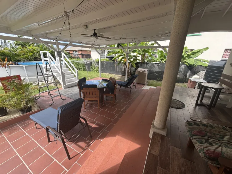 Outside, the fully fenced backyard offers a generous space for relaxing, hosting friends or simply enjoying the island breeze. The home also features a private pool for sun soaked afternoons. Garden maintenance and pest control are included in the rent. Pool servicing, approximately BBD $75 per week, and garden upkeep, about BBD $120 per fortnight, are noted for tenant awareness.
