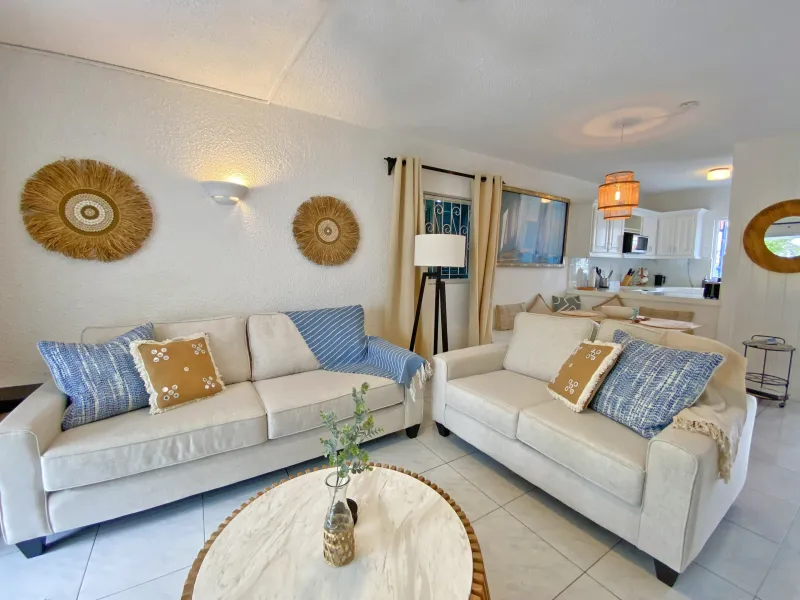 Escape to our delightful 2-bedroom townhouse in Rockley Golf and Country Club, nestled within the secure and lush South Coast resort offers AC throughout. Enjoy tastefully furnished interiors, a fully equipped kitchen, and a cozy living area and patio for relaxation. Take advantage of onsite amenities like the communal pool, tennis courts, and golf course, with Rockley/Accra Beach just a short stroll away.