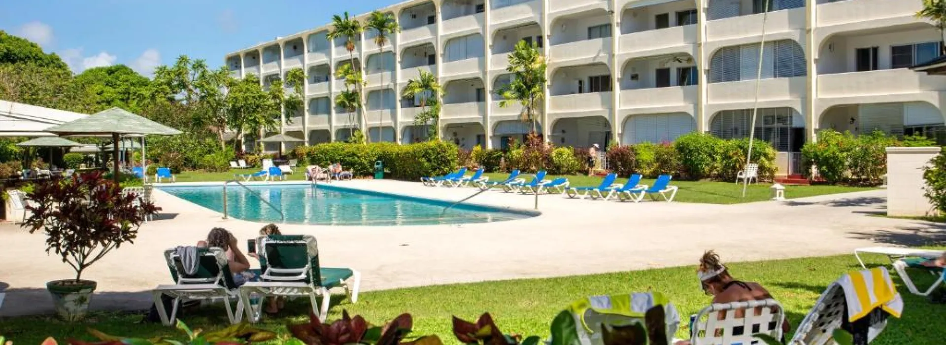 Golden View Condominium is a private development in the centre of the vibrant Sunset Crest on the exciting west coast of Barbados, in Holetown, St. James. The large 4 storey property sits on 5 acres of beautifully manicured land and comprises of 120 privately owned 1-bedroom apartments, with elevator access to upper floors. Mature peaceful gardens, a large swimming pool, shared laundry facilities, management office, restaurant and bar, individual gazebos, private parking, 24 hour front desk/reception, security facilities and on site Property Manager, rate this delightful property among the best on the island.