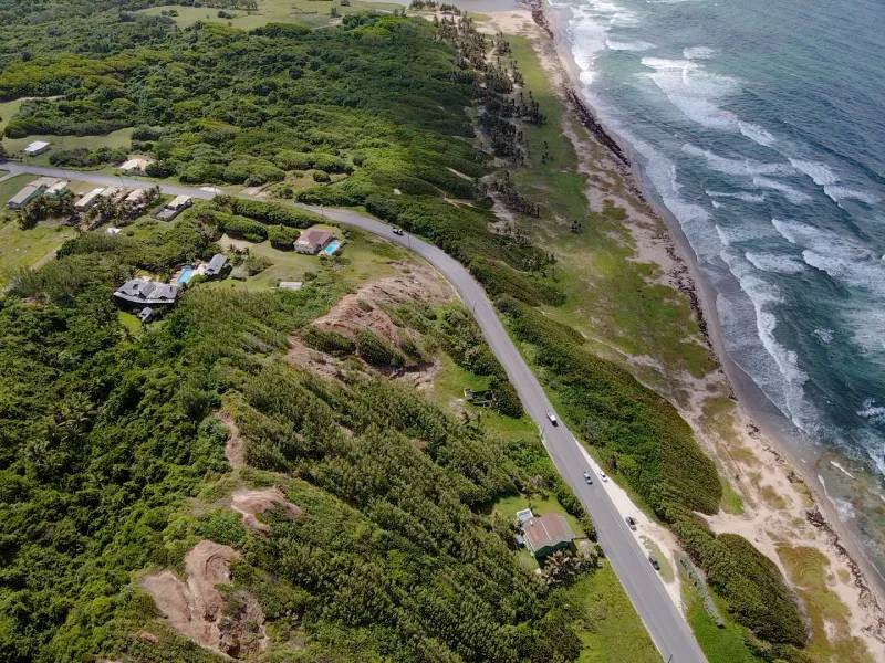 Discover a rare chance to own a remarkable piece of Barbados real estate along the breathtaking East Coast Road. Spanning 152,630 sq. ft., this one-of-a-kind property offers both direct beach frontage and elevated landside acreage, creating a versatile canvas for visionary development.