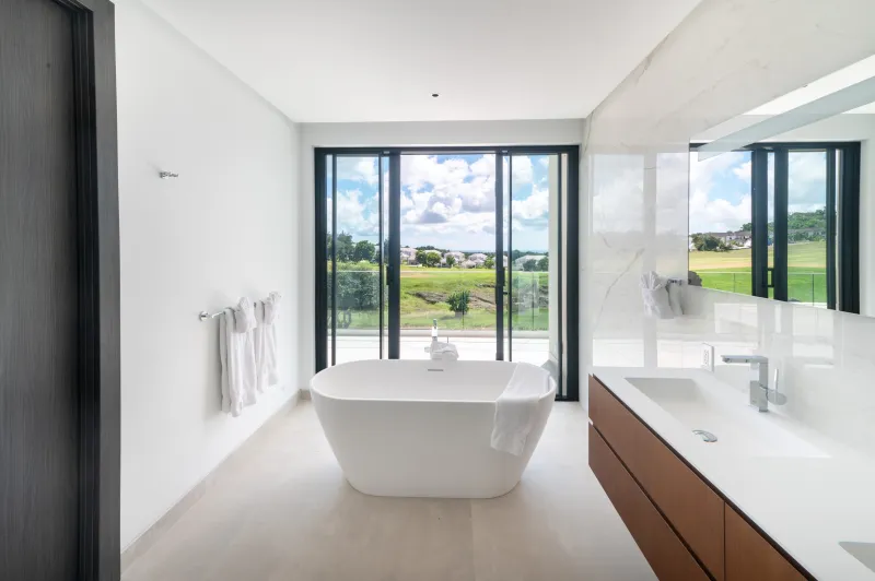 The remarkable elevation at Apes Hill, which sits just a short distance from the island’s highest peak, allows for a multi-sensory experience involving the trade winds from the east, indigenous gullies, gardens and nature views. High ceilings and extra-large glass doors create a fully open space, blending inside/outside. The focal experience features outdoor entertaining, privacy, intimacy and the integration of the natural tropical environment to enable the gloriously, laid-back yet luxurious lifestyle that so epitomizes the island of Barbados.