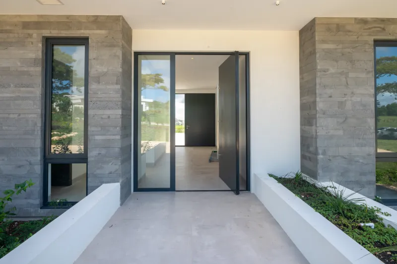 Envelope Finishes: Solid entrance door with pivot operation and glazed side vents. CAT 3 Hurricane Impact resistant sliding aluminum framed glazed patio and terrace doors. CAT 3 Hurricane Impact resistant aluminum framed windows. Sand and cement rendered, slicked and painted walls. Feature walls cladded with feature stone.