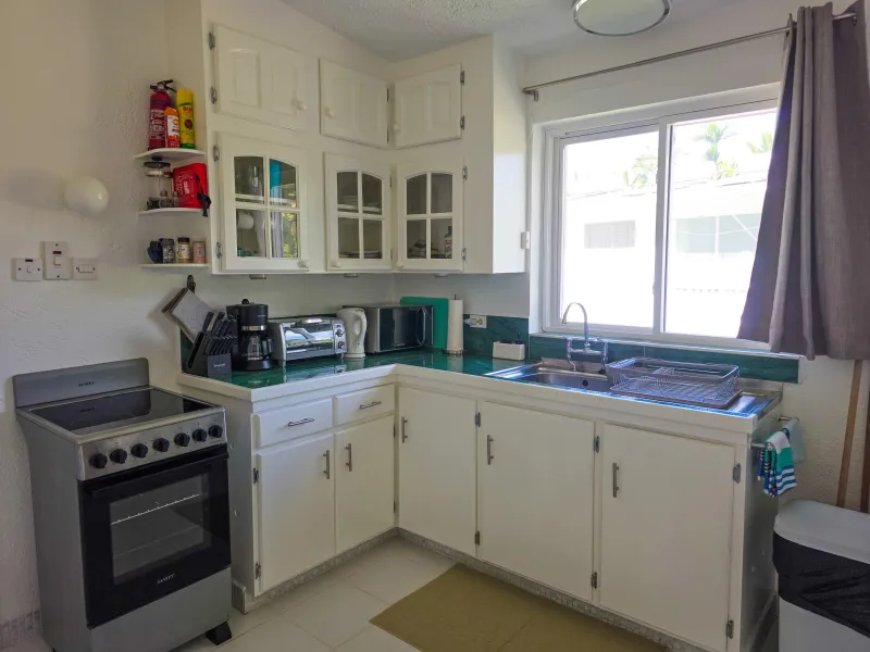 Outside, there is also a shared charcoal barbecue, perfect for al fresco dining, accompanied by beach chairs where you can relax and savor the stunning garden view, making it the perfect place for your next Barbados vacation.