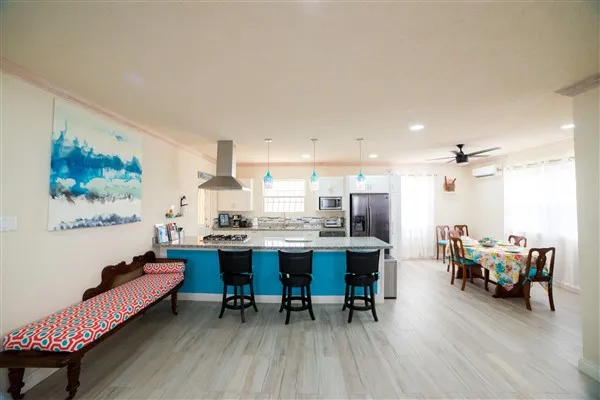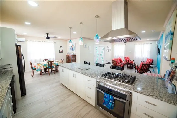 This 5 Bedroom / 4 Bathroom family home has been beautifully renovated from the ‘old house charm’ to a bright, modern, open plan concept, with the ability to rent as a 2 bedroom, 2 bathroom unit. There are still a few traditional furniture pieces to keep the charm alive. The spacious living, dining and kitchen flow into each other, with the kitchen fully stocked with high end appliances. There are two Air Conditioners in the TV and Living Area and the house has security cameras and a coded door lock.