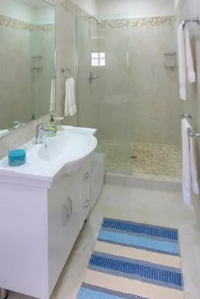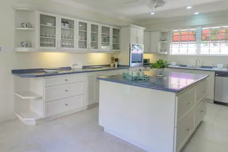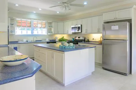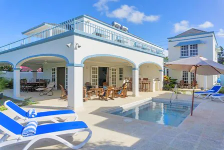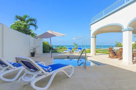 It is located to the North of our Bridgetown Harbour and is just a few minutes drive to Warrens or Holetown with many amenities including golf at the world renown Sandy Lane Golf Course. One can enter the property from the parking area via solid front door or electronic garage access. Immediately the essence of this detached property with its combination of Caribbean and contemporary flare is noticed. The owner has given consideration to relaxed living and entertaining in that the kitchen with its granite countertops and island is just off of the main living area with quaint dining. The entire lower level has a wrap around covered passageway leading onto a generous covered patio, lounge and dining area all offering unobstructed views of our white sands and glistening ocean. There is a salt water plunge pool and deck just off of the lounge area, perfect for tanning, and the bar is conveniently positioned between the kitchen and the deck. Just a few steps away one can paddleboard, snorkel or just laze and enjoy the gentle lapping of the ocean. The upper level offers two bedrooms to the East of the stairs, both have en-suite bathrooms with shower; one has built in closets and sleeps four – ideal for teenagers or children, while the other has a kingsized bed, built in closets and additional chest of drawers. The Master bedroom located towards the West has an en-suite bathroom with shower and walk in closet. Via full French doors one has access onto the large open patio overlooking the sea, truly a great space to sit and enjoy your surroundings or those romantic nights together. The bedrooms are air conditioned and have ceiling fans and flat screen TV’s, the property has security grills throughout, an alarm system managed be a reputable security firm and beautiful garden to the West.