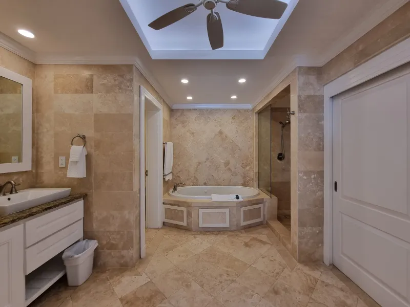 The grand primary bedroom invites you to wake up to mesmerizing patio and garden views every morning, while the secondary bedroom offers a serene escape, welcoming in beautifully landscaped tropical greens, and enjoying a covered patio. Comfort is guaranteed with air conditioning and ceiling fans in all bedrooms.